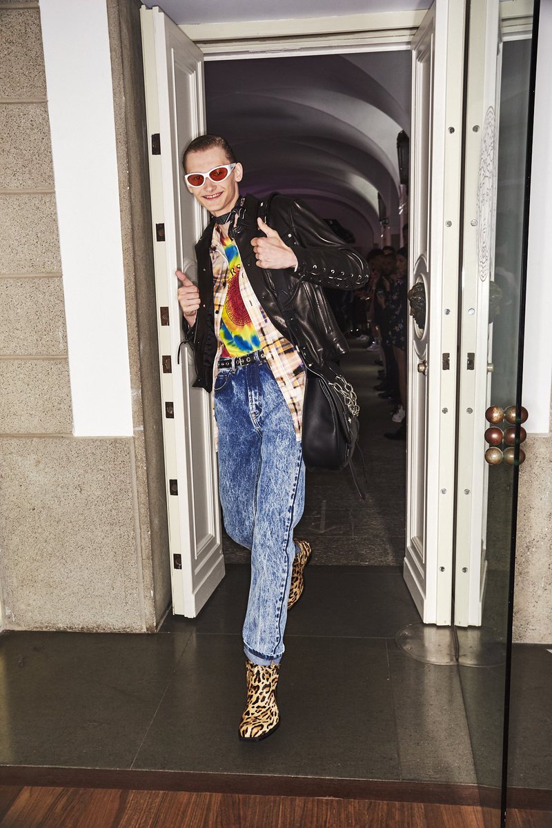 - Leather and denim are enriched with metal eyelets, fringe detail and animalier pattern accents. #MFW Take a look behind the scenes of the #VersaceSS20 runway show: http://e-versace.com/men_ss20