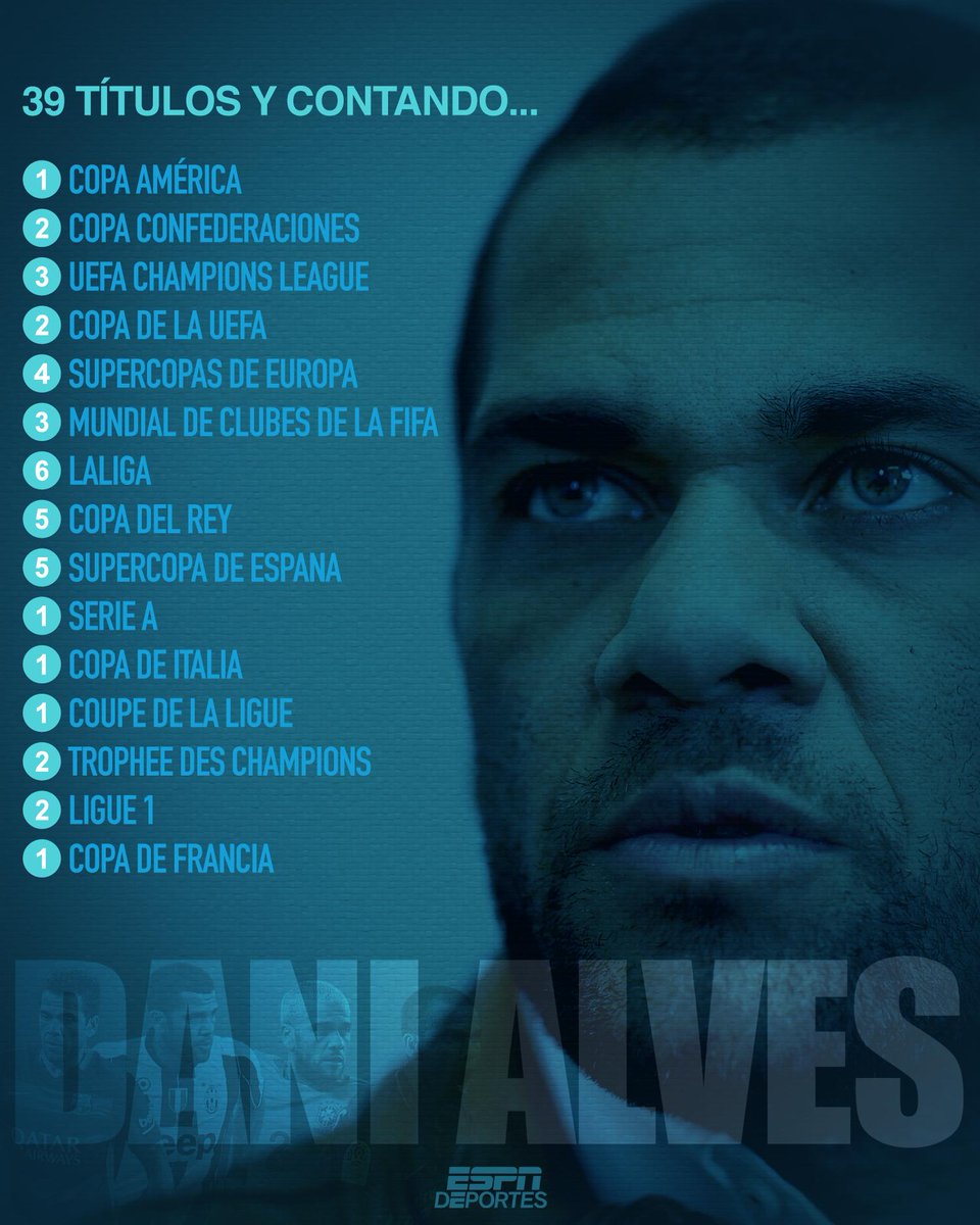 - Daniel Alves RetweetedLos títulos de @DaniAlvesD2 hablan por si solos, el jugador brasileño se despide del @PSG_inside con una carrera llena de triunfos
