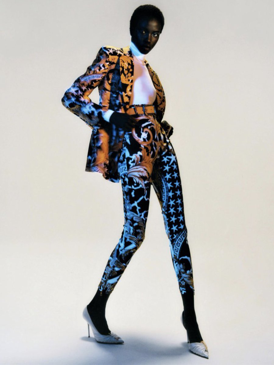 - Savage Barocco print structured blazer and #VersacePreFall19 printed trousers featured in @VogueParis. #VersaceEditorials Photography: Sam Rock Styled by Aleksandra Woroniecka Model: Anok Yai http://e-versace.com/editorials