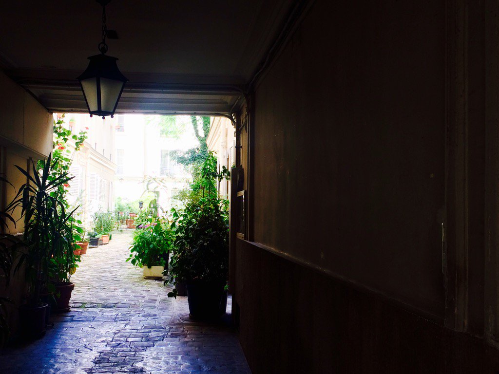 - Encore une jolie cour aperçue dans l'entrebâillement d'une porte cochère ce matin, rue de bellefond à #Paris 9ème