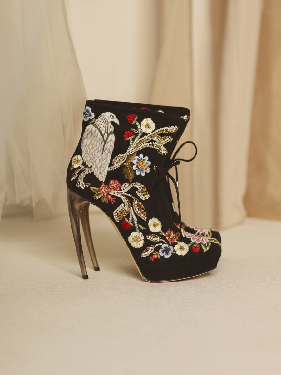- Horn heel boots are embroidered with medieval flora and fauna designs. See more: http://bit.ly/shoespreaw17
