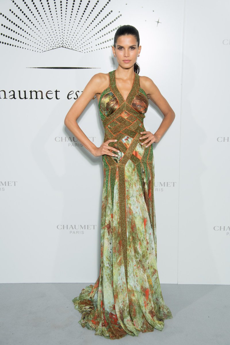 - Beauty at its Finest - The iconic #EvaHerzigova in a #RobertoCavalliCouture evening gown with a bodycon gold mosaic embroidery.