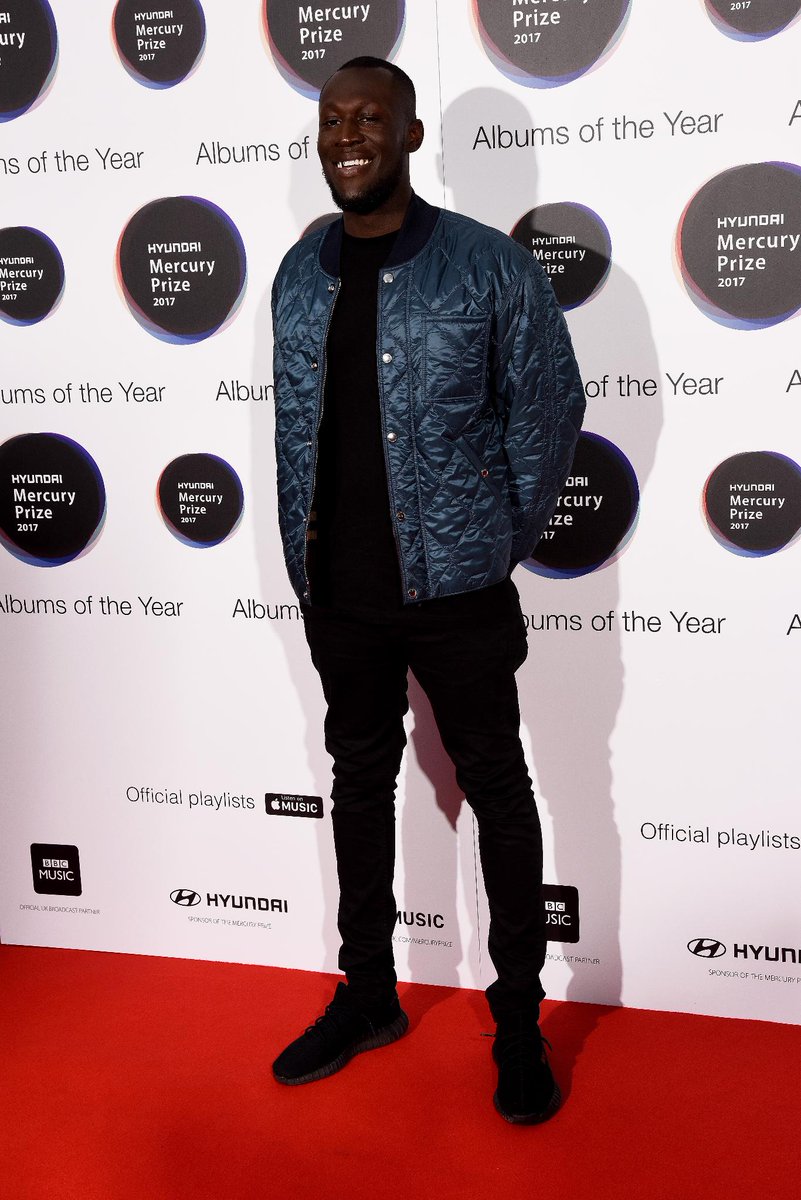 - Mercury Award nominee @Stormzy1 wears a @Burberry quilted bomber jacket on the #MercuryAwards red carpet