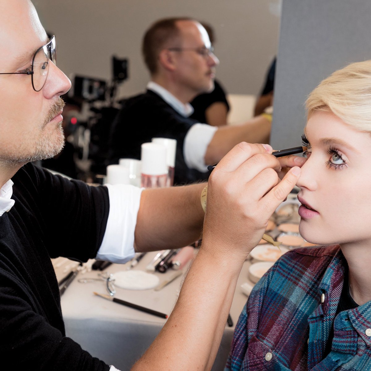 - Makeup at the Dior Spring-Summer 2018 Ready to Wear show: modern beauty look focused on the eyes by Peter Philips. http://on.dior.com/tt-rtwss18-album …