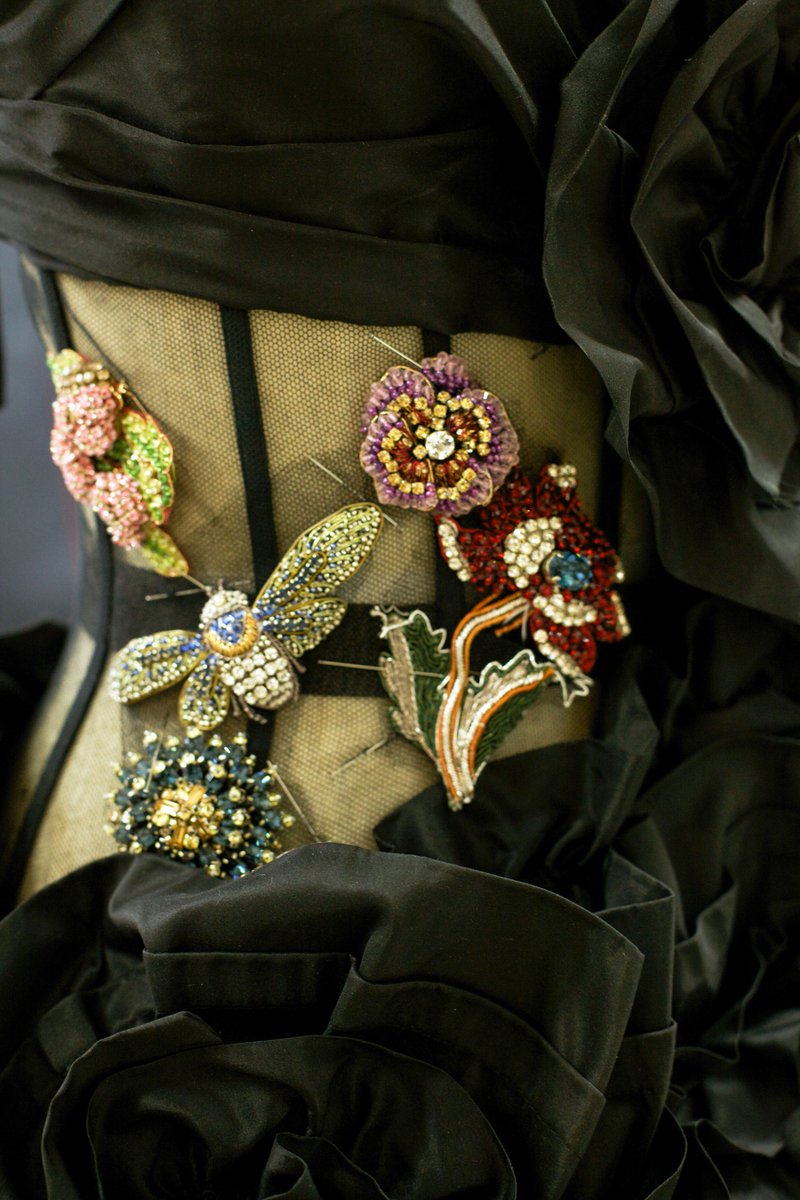 - Jewelled garden embroidery on a black silk faille ruffle dress. Discover #McQueenSS18: http://bit.ly/ss18mcqueen