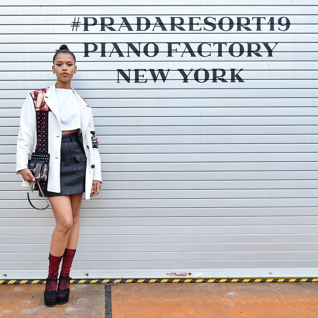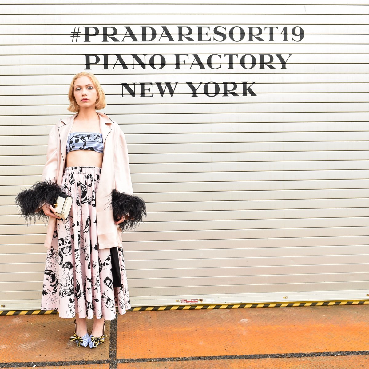 - .@Tayrrussell, .@notNickRob, .@NicoleAnnePeltz, .@AnwarHadid and .@TaviTulle at the #PradaResort19 fashion show at Prada Piano Factory in New York. #PradaPeople