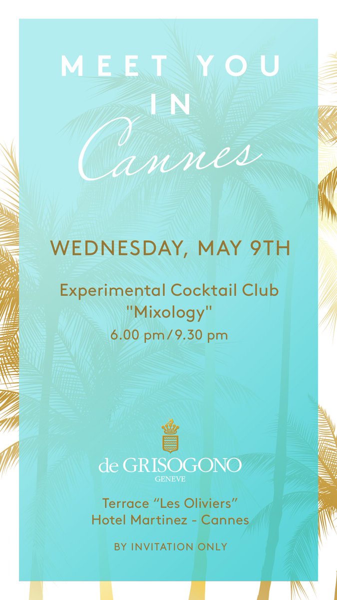 - Every day is a celebration at de GRISOGONO Terrace des Oliviers - Hotel Martinez. Will you join us ? Tonight, Experimental Cocktail Club "Mixology" 6.00pm / 9.30pm #meetyouinCannes #degrisogono #mixology #daringcreativity #Cannes2018