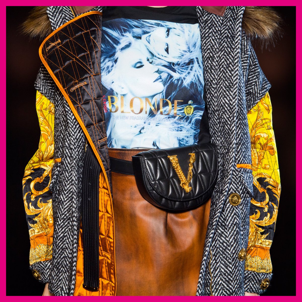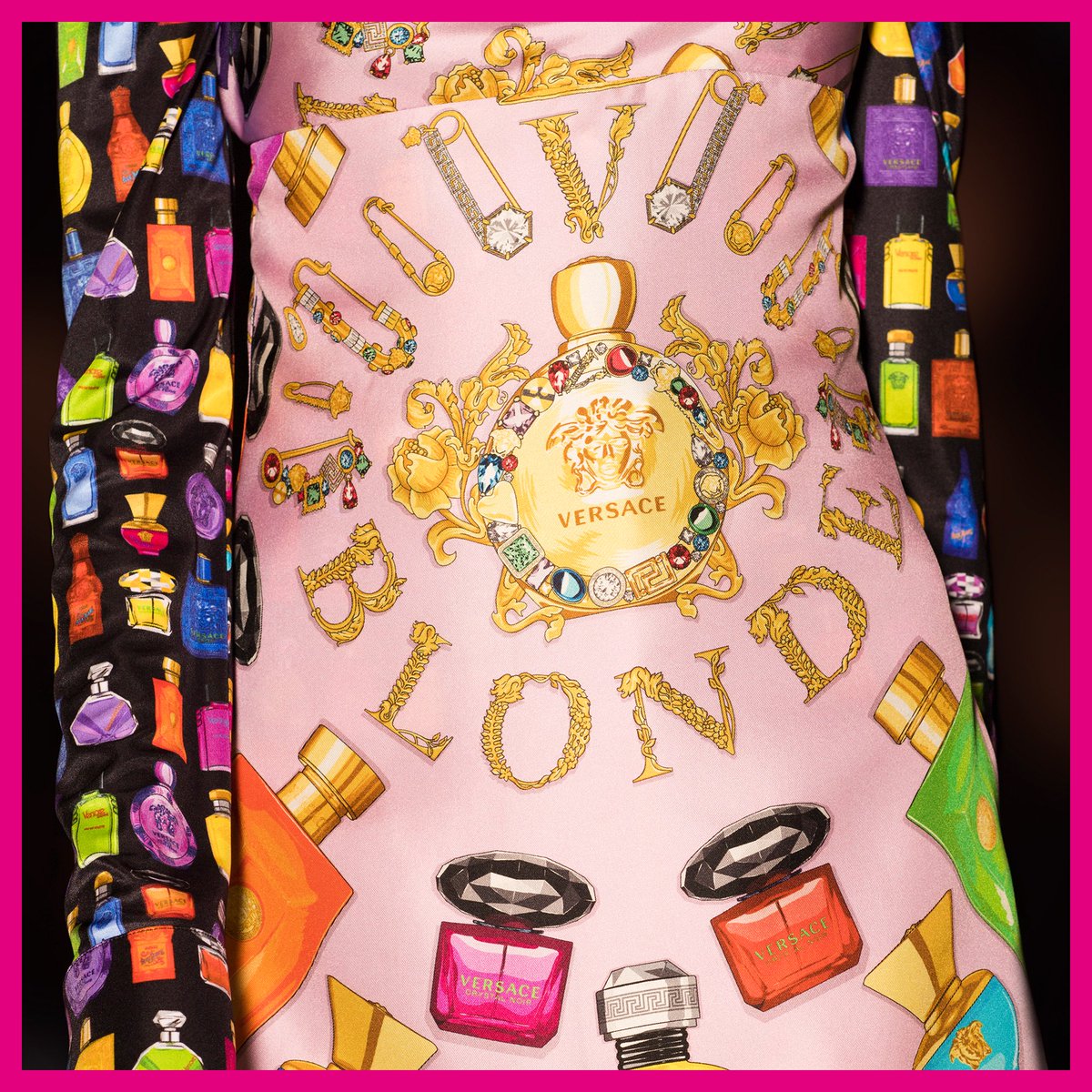 - The Blonde campaign and the associated fragrance, lent inspiration to the #VersaceFW19 collection where new prints and embroideries showcase the house’s most distinctive perfume bottles. #MFW Watch the show: http://e-versace.com/versacefw19