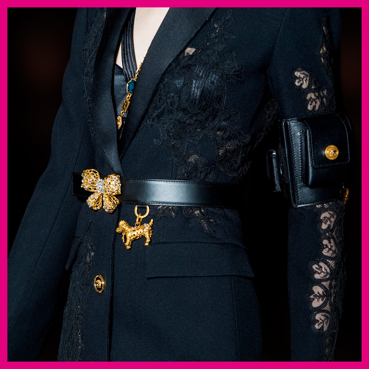 - Contrasting styling details on the runway where delicate lace and crystal embellishments are paired with a utilitarian arm band. #VersaceFW19 #MFW Watch the show: http://e-versace.com/versacefw19
