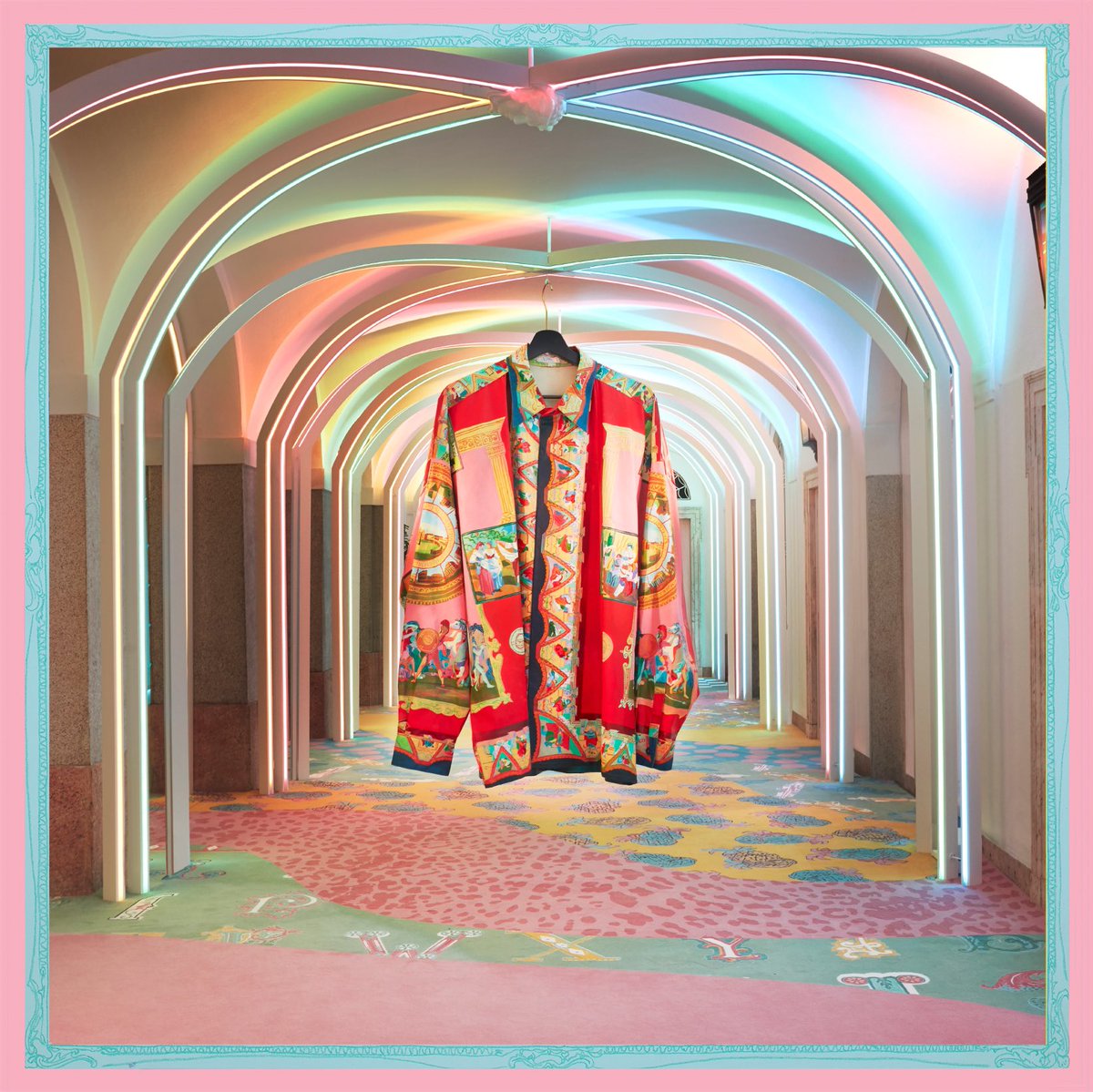 - Measuring 108 x 85 inches, the ‘Versace Shirt’ a key piece in #AndyDixon’s latest exhibition, “Look at This Stuff Isn’t It Neat” has arrived at the Versace Fuorisalone exhibition. #MilanDesignWeek #mdw Find out more: http://e-versace.com/fuorisalone2019