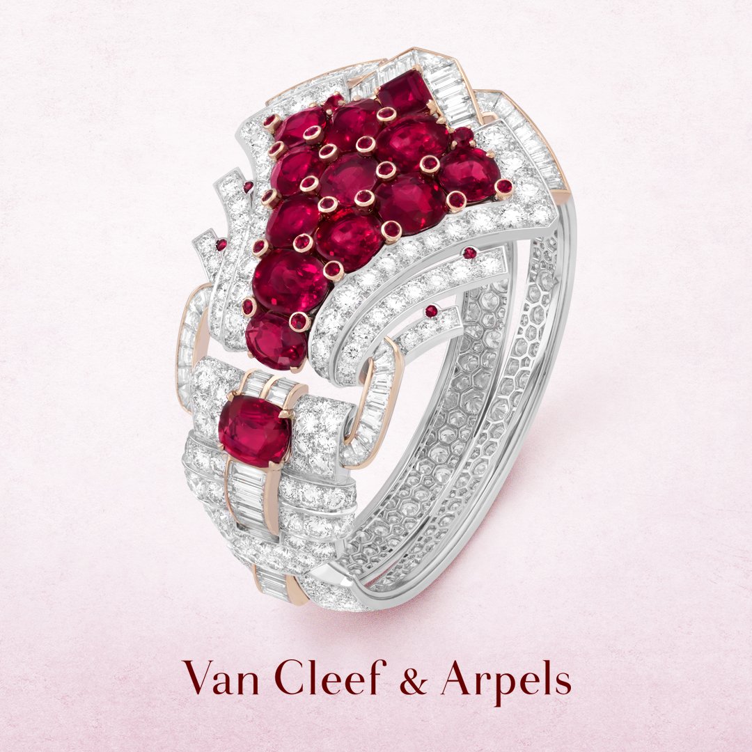 - As an homage to the world of couture, the Eventail souverain bracelet showcases a set of 13 perfectly matched rubies.The stones warm one another with their limpid sheen and pink-tinged red hue. #Treasureofrubies #HighJewelry #VanCleefArpels http://ow.ly/cFpx50oYahO