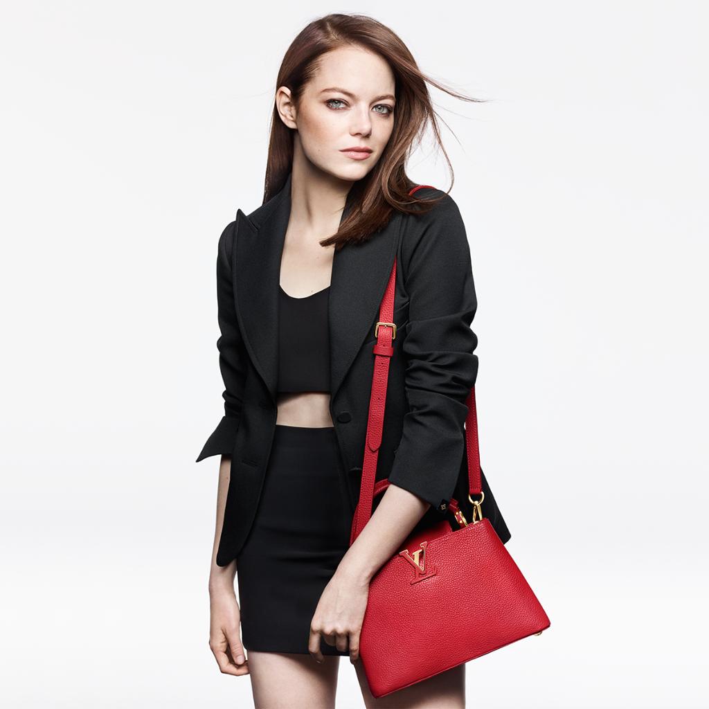 - For modern sophisticates. #EmmaStone wears the Capucines bag in the #LouisVuitton New Classics campaign. Learn more at http://on.louisvuitton.com/6012Ej19a Featuring “Dance” by @esgtheband