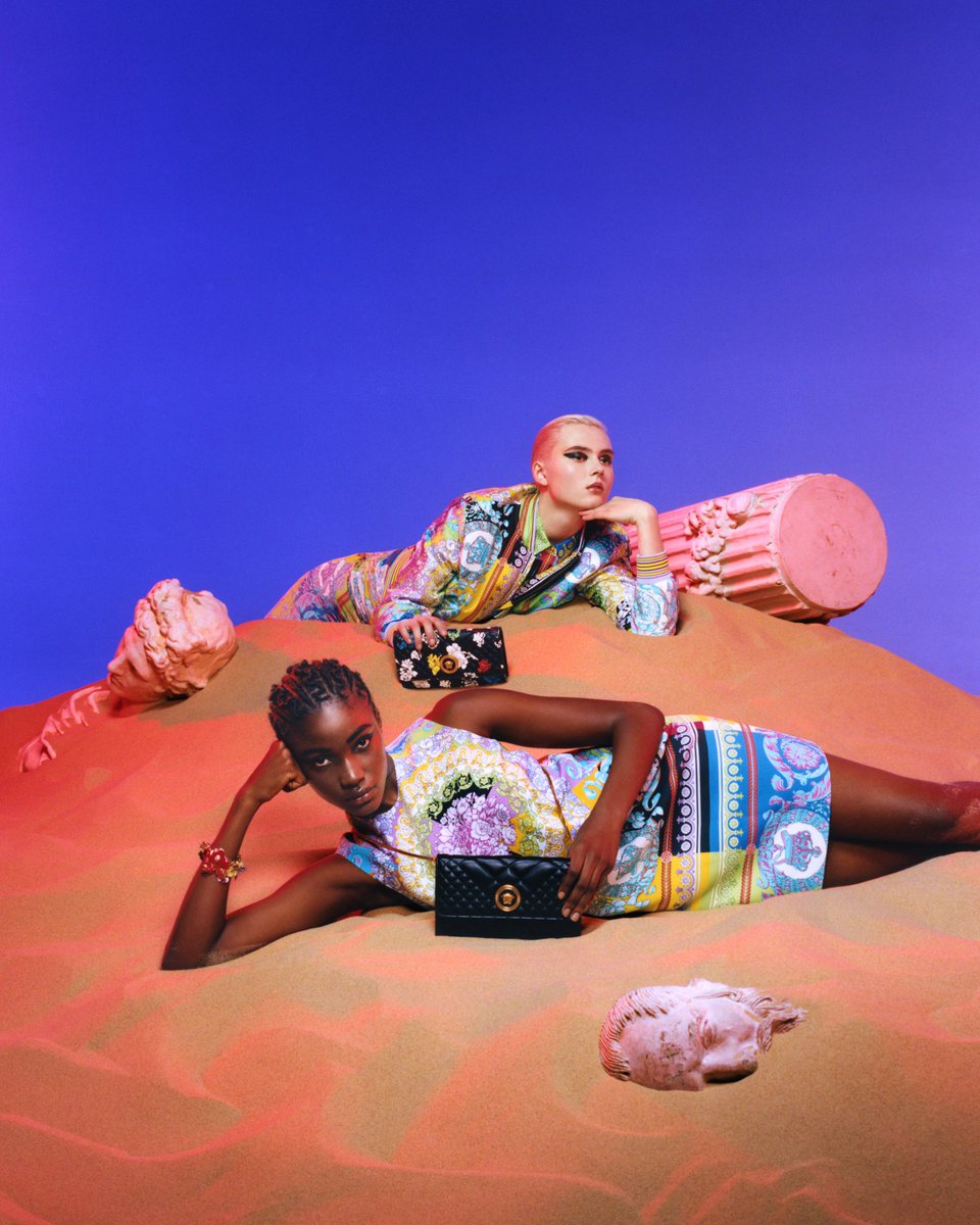- The #VersaceSS19 bright Technicolor Baroque print is featured on smooth calf leather #VersaceIcon bags. Explore the accessory selection: http://e-versace.com/thespringedit